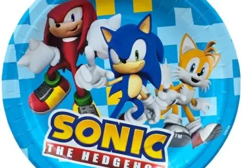 צלחות נייר גדולות בקונספט סוניק גודל: 23 ס”מ