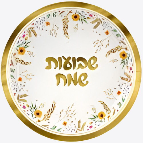 צלחות נייר גדולות בעיצוב מיוחד לחג השבועות, בעיטור שיבולים באווירת החג