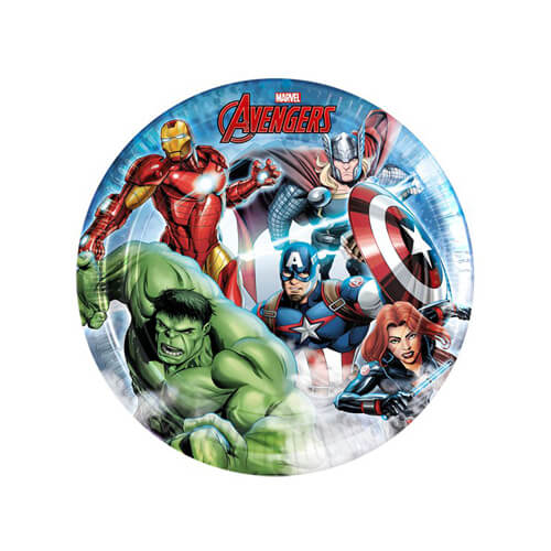 צלחות נייר קטנות בקונספט הנוקמים קוטר: 20 ס”מ כמות: 8 יחידות