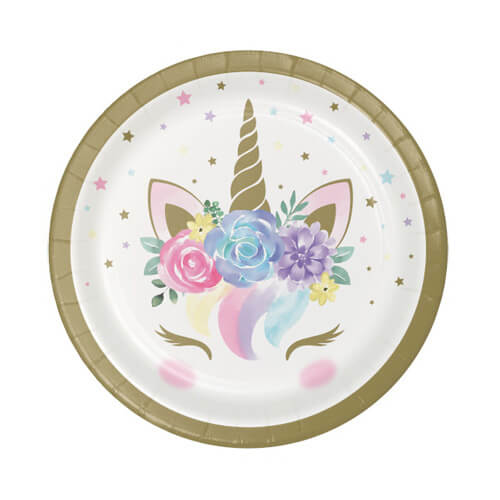חבילת 8 צלחות קטנות השייכות למסיבת חד קרן פרחוני