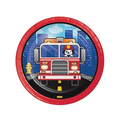 חבילה של 8 צלחות נייר קטנות למסיבת כבאית ההצלה!