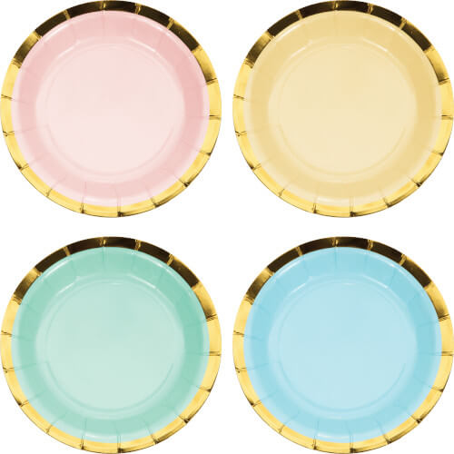חבילת 8 צלחות קטנות השייכות למסיבת פסטל מגיע בחבילה מגוון: ורוד, תכלת,ירוק וצהוב