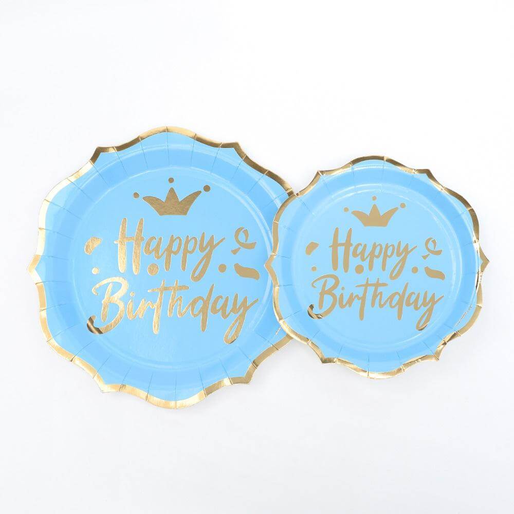 צלחות בצבע כחול עם כיתוב זהב מושלמות לכל מסיבה.