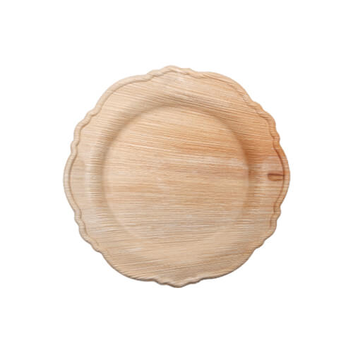 צלחת עגולה קטנות מתכלה טבעי מעלי דקל בסגנון מעוטר וחגיגי (לשימוש במיקרוגל) כמות: 10 יח’ קוטר: 19 ס”מ