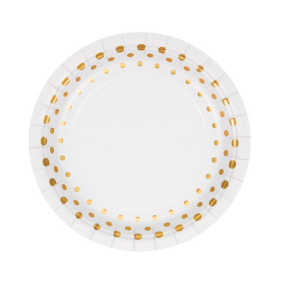 חבילה של 8 צלחות מנייר קטנות עם נקודות זהב נוצצות גודל: 7″