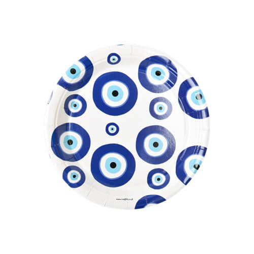 8 צלחות מסיבה קטנות בעיצוב עין יוונית למסיבה צבעונית ומושלמת