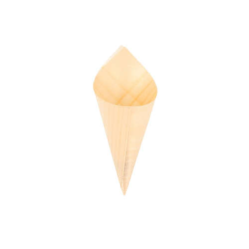 קונוסים קטנים מעץ טבעי להגשה אישית של ירקות חתוכים, קינוחים, צ’פסים וכו’ אורך הקונוס: 12.5 ס”מ כמות: 50 יחידות