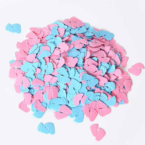 קונפטי בצורת כף רגל של תינוק בצבע ורוד ותכלת למסיבת בן או בת