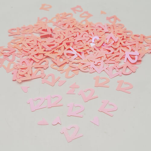 קונפטי מעוצב גיל 12 בצבע ורוד לקישוט השולחן.