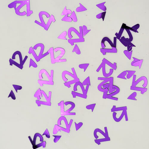 קונפטי מעוצב גיל 12 בצבע סגול לקישוט השולחן.