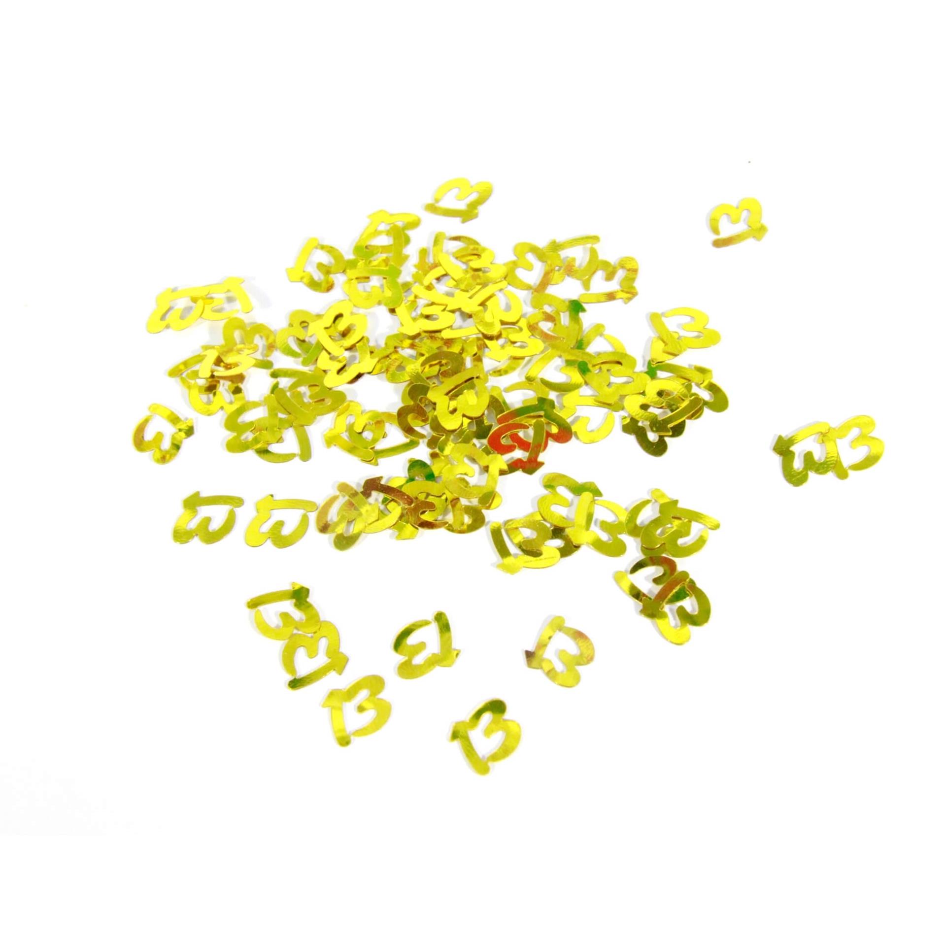 קונפטי מעוצב גיל 13 בצבע זהב לקישוט השולחן. משקל: 50g
