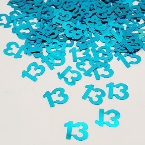 קונפטי מעוצב גיל 13 בצבע תכלת לקישוט שולחן בר מצווה.