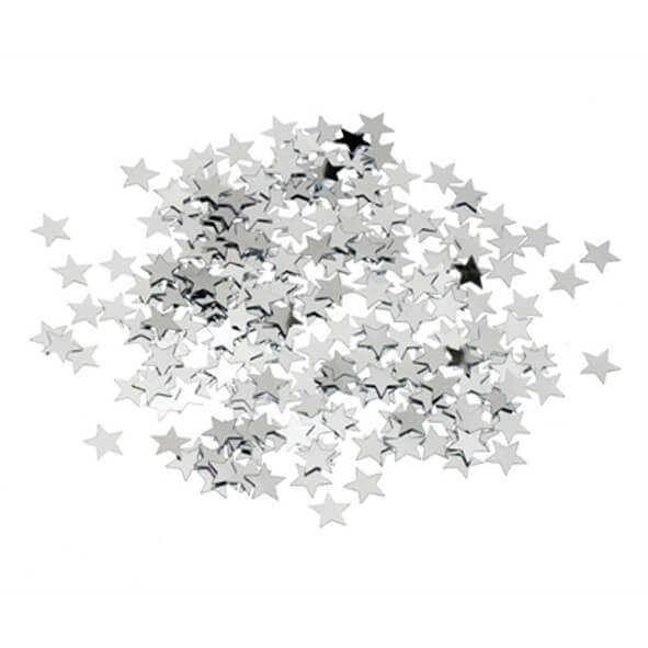 קונפטי מעוצב בצורת כוכבים בצבע כסף לקישוט השולחן. משקל: 20g