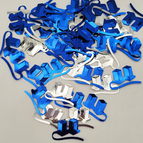 קונפטי מעוצב בצורת תפילין בצבע כחול כסף לקישוט שולחן בר מצווה.