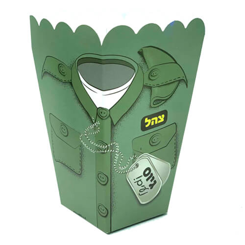 6 קופסאות פופקורן מסיבת גיוס, בעלות איור של מדי צבא ירוקים.
