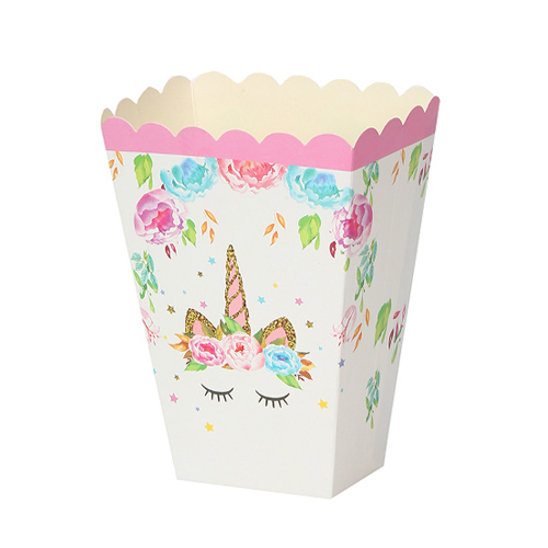 6 קופסאות פופקורן מושלמות בעיצוב חד קרן פרחוני למסיבה מתוקתקת ואלגנטית גודל קופסא: 7X6 ס”מ