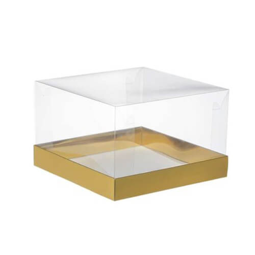 קופסת קרטון מרובעת גבוהה עם תחתית דגם זהב מטאלי + מכסה שקוף העשוי מ PVC