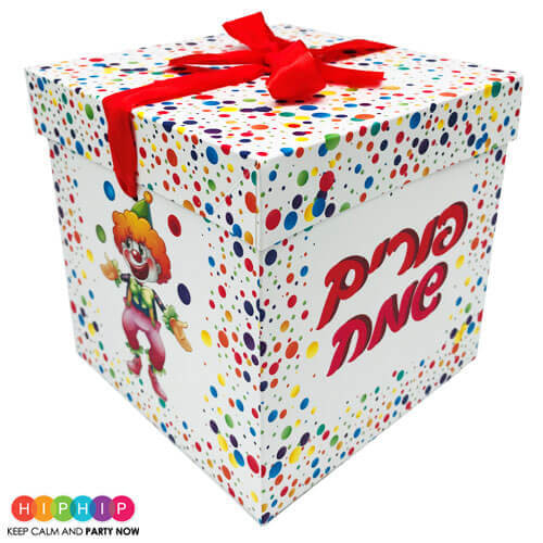 קופסת קרטון עם מכסה פורים שמח – גדול