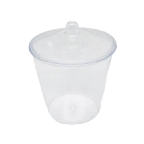 מיני קינוחיות דלי עם מכסה, עשויות מפלסטיק שקוף. גודל הקינוחית: 5.5X5.5 ס”מ. 10 יחידות במארז.