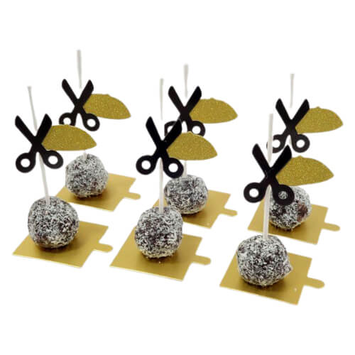 קיסמים לחלאקה עם כיפה ומספריים בצבעי זהב גליטר ושחור
