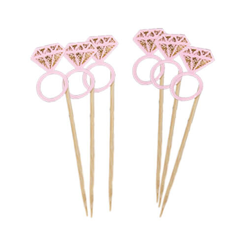 12 קיסמים לקישוט טבעת יהלום בצבע ורוד זהב לקישוט קאפקייקס, אביזר משלים לעיצוב שולחן מסיבה, מסיבת רווקות ועוד גודל: 12.5×2.5 ס”מ