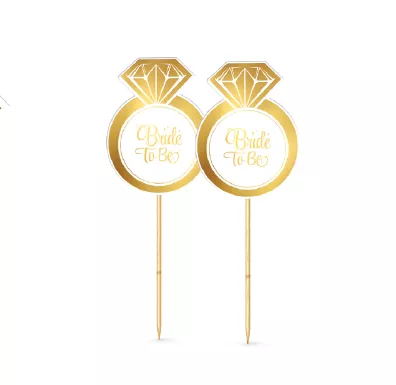 10 קיסמים לקישוט טבעת יהלום בזהב מנצנץ לקישוט קאפקייקס, אביזר משלים לעיצוב שולחן מסיבה, מסיבת רווקות ועוד גודל: 10×3.5 ס”מ