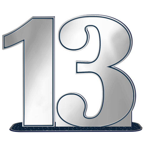 קישוט למרכז השולחן לבר מצווה, גיל 13 כסוף עם תחתית כחולה