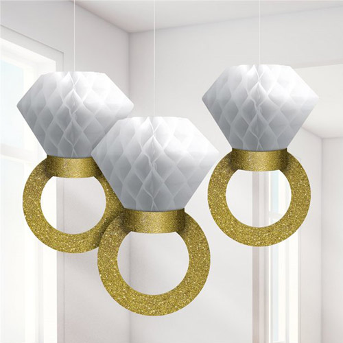 קישוט נייר לתלייה בקונספט טבעות יהלום, מושלם להצעת נישואין וכקישוט במסיבת רווקות