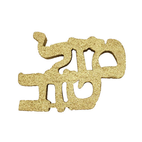 קלקר לעיצוב שולחן מזל טוב בעיצוב מיוחד – בצבע זהב נוצץ למראה יוקרתי ומיוחד.
