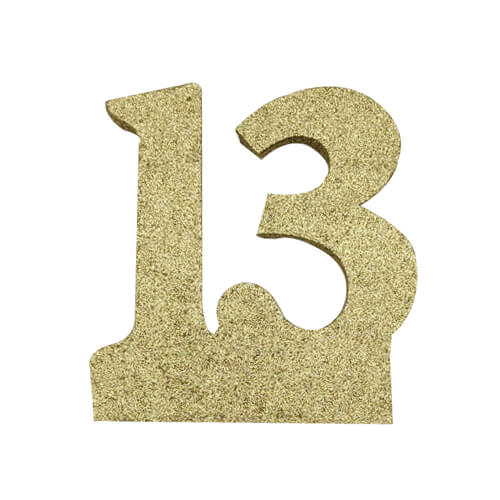 קלקר לעיצוב שולחן בר מצווה בעיצוב מיוחד – ספרה 13 זהב נוצץ למראה יוקרתי ומיוחד.