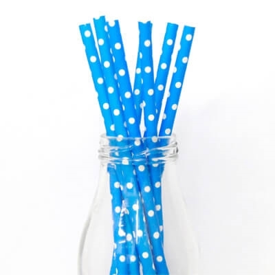 קשיות נייר בצבע כחול עם נקודות לבנות כמות בחבילה: 25 קשיות