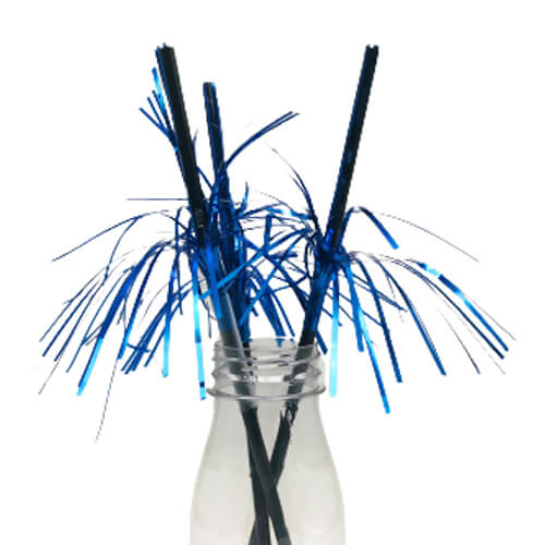 קשיות פלסטיק שחורות, עם עיטורי פרנזים בצבע כחול. משדרגות כל שולחן יום הולדת. 24 קשיות במארז.