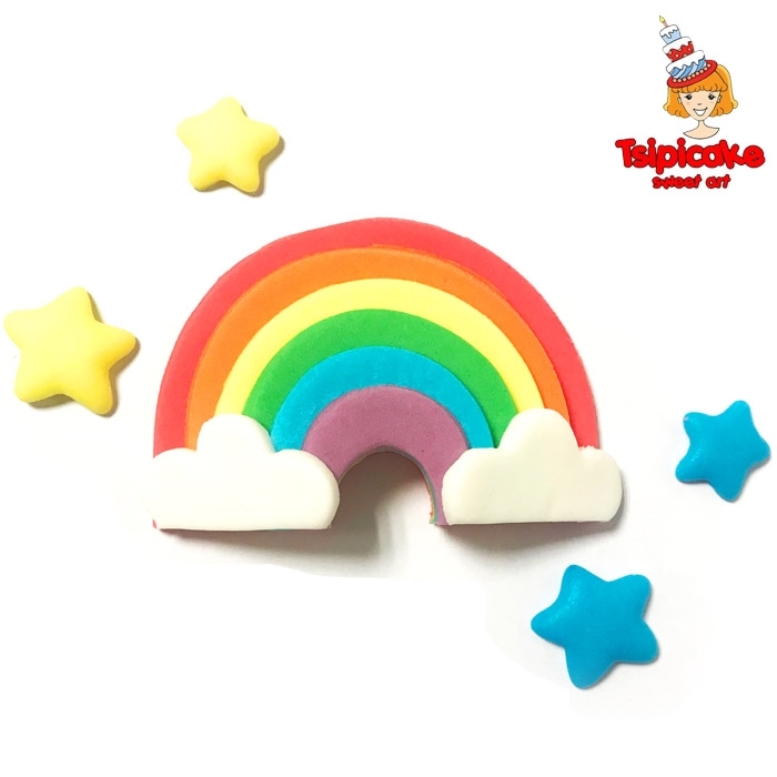 קשת בענן עם כוכבים צבעוניים מבצק סוכר לעיצוב עוגה 7 ס”מ