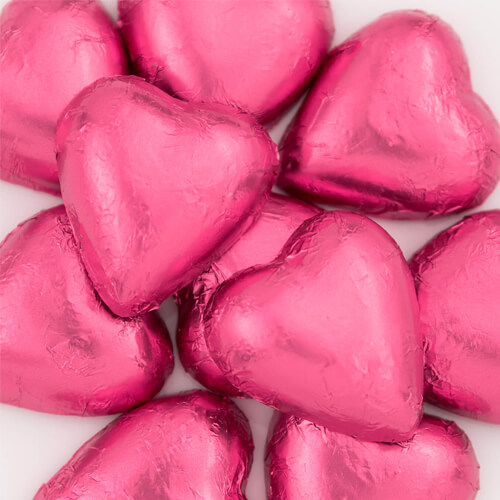 לבבות שוקולד איכותיים ויוקרתיים מצופים בעטיפה מטאלית בצבע ורוד