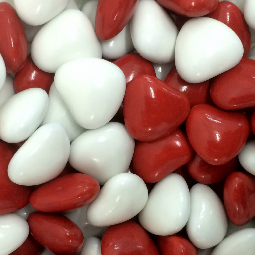 חבילת שוקולד עדשים בצורת לבבות אדומים ולבנים כמות: 500 ג’
