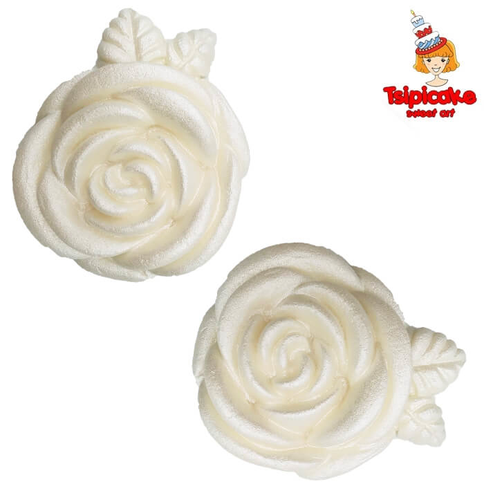זוג שושנים גדולות מבצק סוכר בצבע פנינה גודל: 6×7 ס”מ