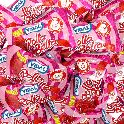 חמצוצים ארוכים מגולגלים באריזה מיוחדת וצבעונית בטעם תות חמוץ ומתוק, מילוי מושלם לפיניאטה ופרס מושלם