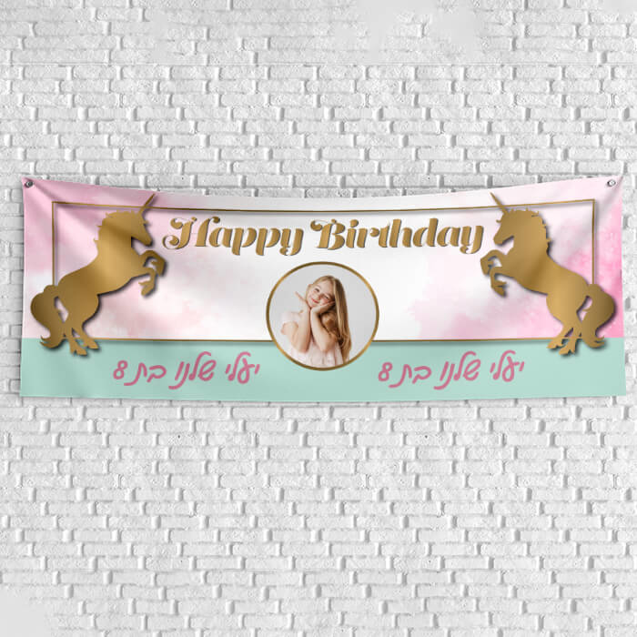 שלט יום הולדת בעיצוב אישי אגדת חד קרן 1