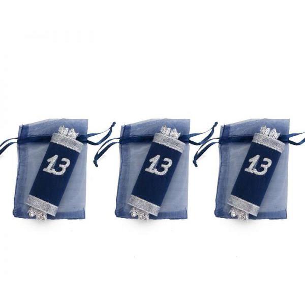 שקיות המוצמדות לספר תורה, לקישוט ואחסון פריטי מסיבה בצורה מיוחדת וחגיגית בבר המצווה. אורך: 10 ס”מ רוחב: 8 ס”מ