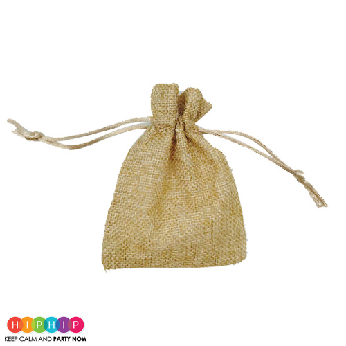 שקית יוטה בעיצוב טבעי לאחסון מתנות הפתעות ושלל חפצים בכל מסיבה ויום הולדת מיוחד אורך: 10 ס”מ רוחב : 8 ס:מ