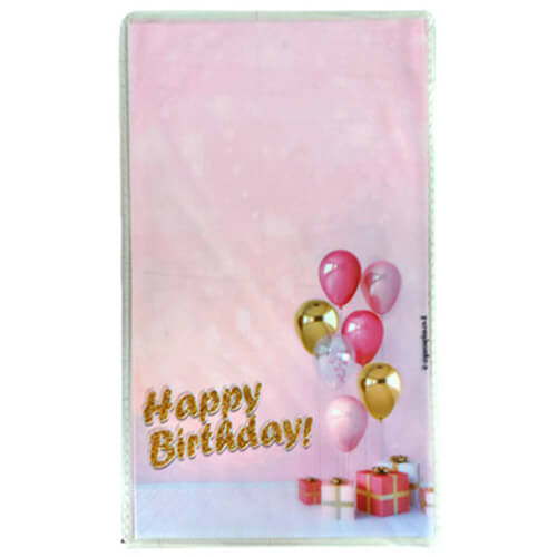 שקיות ניילון Happy Birthday בצבע ורוד עם איורי בלונים ומתנות