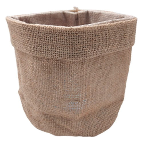 שק גדול בעיצוב יוטה עם בסיס המתאים להכלת אביזרים שונים וכן צמחים וקישוטים, בתוכו שקית ניילון אטומה