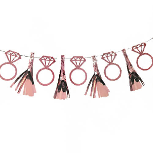 שרשרת פרנזים וטבעות יהלום בצבע רוז גולד מטאלי, מושלמת לקישוט מסיבת רווקות שיקית במיוחד. אורך השרשרת: 2 מ.