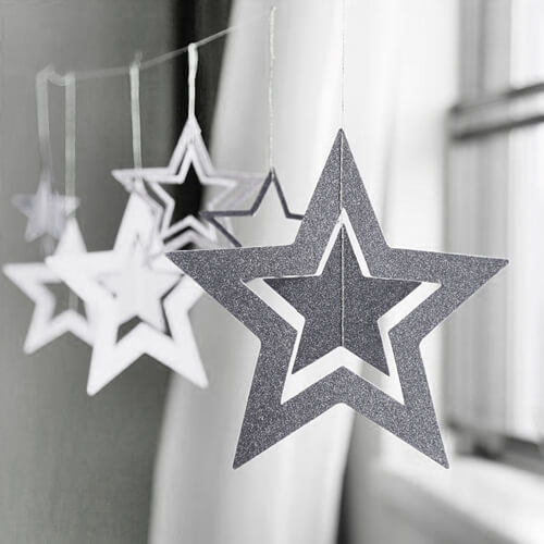 שרשרת כוכבים לקישוט בצבע כסוף גליטר מגיע 7 יחידות בגדלים שונים
