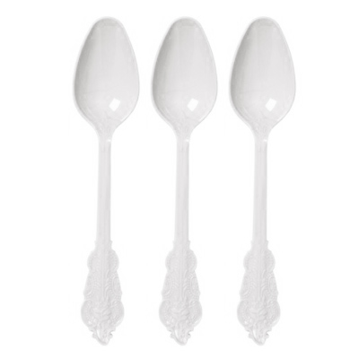 כפות חד פעמיות לבנות, עשויות מפלסטיק קשיח ואיכותי במיוחד בדוגמת וינטג’.