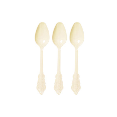 חבילת כפיות בצבע קרם, עשויות מפלסטיק קשיח ואיכותי במיוחד בדוגמת וינטג’.