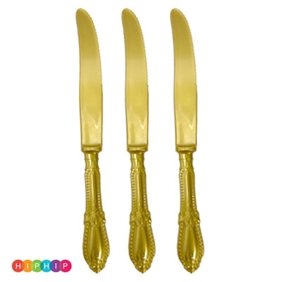 חבילת מזלגות בצבע זהב, עשויות מפלסטיק קשיח ואיכותי במיוחד בדוגמת וינטג’.