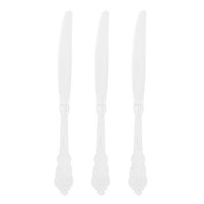 סכינים חד פעמיות לבנות, עשויות מפלסטיק קשיח ואיכותי במיוחד בדוגמת וינטג’.