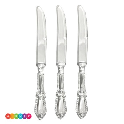 חבילת סכינים בצבע שקוף, עשויות מפלסטיק קשיח ואיכותי במיוחד בדוגמת וינטג’.