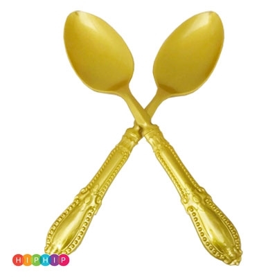 2 כפות הגשה בצבע זהב, עשויות מפלסטיק קשיח ואיכותי במיוחד עם עיטורים בידית הכף